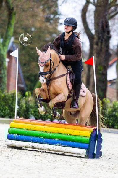 Unser lieber Wynswood Elfie WNE freut sich darauf, einem neuen Reiter alle Feinheiten des Reitsports beizubringen! Elfie ist ein 9-jähriger Wallach. Er ist 130 cm groß (ohne Hufeisen) und wurde vielseitig von meiner Tochter ausgebildet. Wir haben ihn seit seinem dritten Lebensjahr und haben mit ihm inzwischen alles gemacht. Dressur: Er ist in M1 klassifiziert und hat gewonnen. Er zeigt sich leicht zu reiten, hat angenehme Gänge und eine sehr schöne, versammelte Galoppade. Er lässt sich sehr gut erweitern und erhält dafür oft hohe Punktzahlen! Auch Seitengänge meistert er mühelos. Springen: Elfie wurde bis 60 cm hoch gesprungen, besitzt aber noch weiteres Potenzial. Er erhält häufig hohe Stilnoten, und im Stechen kann er richtig schnell sein. Cross: Seit Kurzem haben wir mit Crosstraining begonnen, das er super aufnimmt. Neben seiner sportlichen Eignung ist Elfie auch ein echter Kinderpony, mit dem man viel Spaß haben kann. Ohne Sattel, ohne Zaum, bei Waldritten, Strandritten – alles liebt dieser Pony! Und er macht alles äußerst brav. Er ist nie nervös oder heiß, nie gemein. Bocken, Scheuen oder wegrennen sind ihm fremd. Auch mit unerfahrenen Kindern ist er super lieb und passt sich vollständig an. Wenn kleine Kinder ihn beim Hoppeln versehentlich in den Mund nehmen oder nicht klar mit Bein oder Peitsche sind, macht ihm das nichts aus. Er ist eher langsam als schnell! Derzeit steht er in unserer Paddock Paradise mit zwei anderen Wallachen und einer Stute. Elfie ist im Herdenverband freundlich und nicht dominant. Elfie ist sowohl für einen Anfänger als auch für einen Fortgeschrittenen geeignet. Er passt sich schnell an!