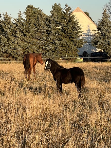 A typical Welsh B filly born on May 11, 2025, is now available for sale. She impresses with her elegant conformation, a balanced and personable character, and elastic basic gaits. "Jumanji" already masters the foal's ABC and has always been curious and eager to learn. She is currently growing up in an open stable with mares aged 5 to 17 years. She is healthy, correctly built, and already familiar with dogs, tractors, and road traffic. Her final height is expected to be around 134 cm. This makes her an excellent future sport, show, or family pony, and her clear mind and joy of movement provide the best prerequisites for a harmonious and successful training. Both parents are ridden and driven and have proven to be very uncomplicated in those disciplines. She is registered with the Neustadt Verband, and her passport is currently being issued. She is now ready to move into a new home. We are looking for an experienced, horse-minded owner who cares for her well! Later on, she will likely also make a wonderful children's pony. Her sire is Frankenhoeh's Merlin (https://www.rimondo.com/de/horse-details/159028/frankenhoehs-merlin). Directly from the breeder, €2000 negotiable. If interested, please send a message here. Jumanji can be viewed by appointment.