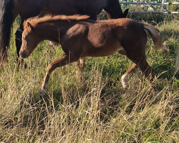 Ich suche für meine im Juli geborene Stute ein neues zu Hause nach dem Absetzen. Ihr Mutter ist eine absolut zuverlässige Stute, sowohl für Anfänger als auch als Kinderpony. Ihre Mutter ist Staatspr. Anwärterin und wurde bei der Eintraung in meinen Verband mit den Worten "zurecht Verb. Pr. " anerkannt. Ihr Vater stammt aus einer Verb. Pr. Stute mit überragenden Sportambitionen ab und sein Vater ist Pr. Sieger Hengst im fahren und gekört. Beide Seiten in der Abstammung beinhalten sehr viele bekannte und auch erfolgreiche Vorfahren, so wie Elite, Prämien und vielseitig ausgezeichnete Showerfolgen. Aber auch im Sport liefen bereits einige Vorfahren sehr erfolgreich, auch mit Kindern. Genaue Abstammung gerne bei Interesse auf Anfrage. Sie bekommt volle Papiere beim ZfdP. Die kleine selber war kaum auf der Welt und hatte absolut keine Angst vor Menschen. Seit die Kinder sie streicheln dürfen, wird sie nur noch gekuschelt (selbstversch. nur solange sie es auch möchte) Sie ist neugierig und unerschrocken. Bringt trotzdem, dem Alter entsprechend Elan mit und viel Lebensfreude. Sie wächst in der Herde auf und lernt somit bis zum Auszug noch alle wichtigen sozialen Kontakte. Sie liebt Menschen und bringt einen fabelhaften Charakter mit. So wie es aussieht wird sie später Zeitweise dunkel und könnte eine helle Mähne bekommen. Bis zum Absetzen kann sie Hufe geben, ist Halfter führig, kennt alles mögliche inkl dem Umgang mit Menschen und gerne mache ich für den kommenden Umzug auch schon Hänger Übungen. Kleine Hufpflege arbeiten kennt sie auch schon. Sie lässt grundsätzlich alles mit sich machen. Mit Kindern kommt sie sehr gut klar (selbst verst. immer unter Aufsicht von Erwachsenen) und lässt sich voller Freude streicheln, kuscheln und knuddeln. Sie fordert es sogar eher ein, (aber nicht zu aufdringlich und sie versteht auch ein nein mittlerweile) als das sie sich damit unwohl fühlt. Ich kann Sie mir sehr gut als zukünftiges Kinderpony oder Sportpony vorstellen. Wenn sie nach dem Vater kommt, bringt sie Springtalent mit. Sicher wäre sie auch fürs Fahren geeignet. Aber auch als Zuchtstute auf Grund ihrer tollen Abstammung und ihres schönen Gebäudes. Der Preis ist Verhandelbar. Ein gutes zu Hause bis zum Absetzen ist mir wichtiger. Aber verschenkt wird sie nicht und bleibt trotzdem der Qualität entsprechend noch im Rahmen. Bei Interesse und Fragen bitte hier schreiben, da ich telefonisch fast nicht erreichbar bin