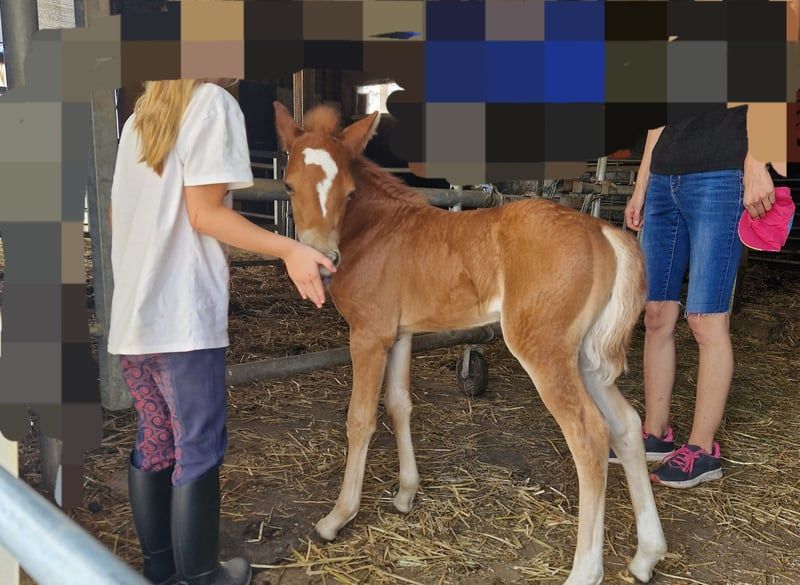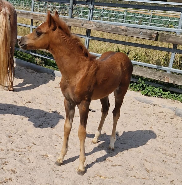 Ik ben op zoek naar een nieuw thuis voor mijn merrie, die in juli is geboren, na het spenen. Haar moeder is een absoluut betrouwbare merrie, zowel voor beginners als als kinderpony. Haar moeder is een staatsprijskandidaat en werd bij de inschrijving in mijn vereniging erkend met de woorden "terecht Verb. Pr." Haar vader komt van een Verb. Pr. merrie met uitstekende sportambities en zijn vader is een prijswinnaar hengst in het mennen en goedgekeurd. Beide zijden van de afstamming bevatten veel bekende en succesvolle voorouders, zoals elite, premie en veelzijdig gewaardeerde showresultaten. Ook in de sport hebben enkele voorouders al zeer succesvol gepresteerd, ook met kinderen. De exacte afstamming is op aanvraag beschikbaar. Ze krijgt volledige papieren bij het ZfdP. De kleine was nauwelijks op de wereld en had absoluut geen angst voor mensen. Sinds de kinderen haar mogen aaien, wordt ze alleen nog maar geknuffeld (zelfs als ze het zelf wil). Ze is nieuwsgierig en onbevreesd. Toch brengt ze, passend bij haar leeftijd, veel energie en levensvreugde mee. Ze groeit op in een kudde en leert zo tot aan het vertrek alle belangrijke sociale contacten. Ze houdt van mensen en heeft een geweldig karakter. Zoals het eruit ziet, zal ze later gedeeltelijk donker zijn en kan ze een lichte manen krijgen. Tot het spenen kan ze haar hoeven geven, is ze halster- en leidingsvaardig, kent ze allerlei dingen, inclusief de omgang met mensen, en ik maak graag al wat trailer-oefeningen voor de komende verhuizing. Kleine hoefverzorging kent ze ook al. Ze laat in principe alles met zich doen. Ze komt heel goed overeen met kinderen (altijd onder toezicht van volwassenen) en laat zich met veel plezier aaien, knuffelen en vertroetelen. Ze vraagt er zelfs om (maar niet opdringerig en ze begrijpt inmiddels ook een nee) in plaats van zich er ongemakkelijk bij te voelen. Ik kan me haar heel goed voorstellen als toekomstig kinderpony of sportpony. Als ze op haar vader lijkt, heeft ze springtalent. Ze zou ook geschikt zijn voor het mennen. Maar ook als fokmerrie vanwege haar geweldige afstamming en haar mooie bouw. De prijs is bespreekbaar. Een goed thuis tot het spenen is voor mij belangrijker. Maar ze wordt niet weggegeven en blijft, ondanks de kwaliteit, nog binnen het redelijke. Bij interesse en vragen graag hier schrijven, aangezien ik telefonisch bijna niet bereikbaar ben.