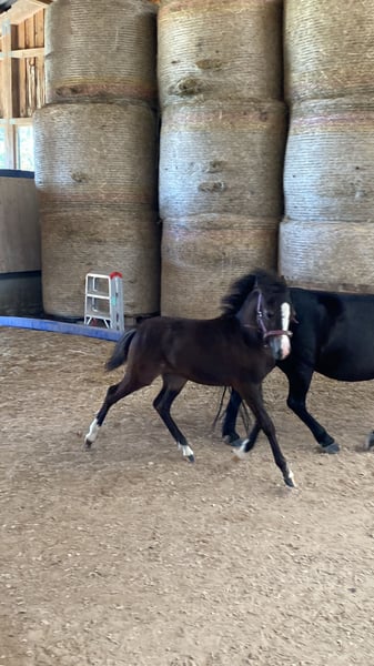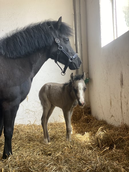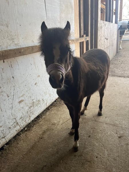Shetty x Welsh B mare, two years old. Excellent conformation, good temperament.