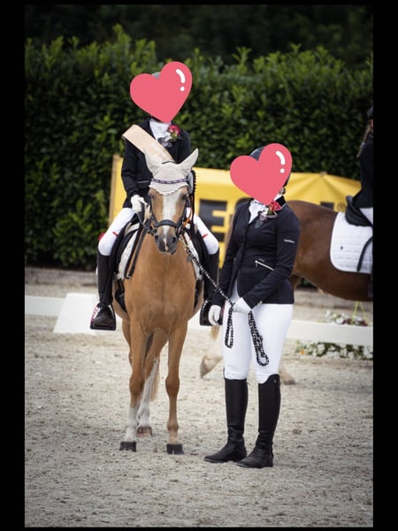 With a heavy heart, I am offering our Pina 118 for sale. She is nine years old and 130 cm tall. Pina has achieved many competition successes with her previous owner, whether in show jumping up to class E or in dressage also up to class E. Pina is familiar with lead rein competitions and dressage/show jumping rider competitions. Typical for a Welsh, Pina has plenty of go and would prefer jumping over dressage :) She loads well into a trailer, is very well-behaved with the farrier, and generally easy to handle. Pina needs a little time to build trust at first, but once you have convinced her, she is an absolute gem. When riding, she needs a confident rider; she is not a pure beginner pony. She may occasionally take a leap forward, but she does not become reckless and remains manageable. She has never shown any bad habits like rearing or bucking under saddle. Currently, she is accustomed to box rest and several hours of grazing. Pina is kept at our home; we have an agricultural business, so machines of all kinds and sizes are completely fine for her. Pina goes out into the countryside alone, but of course also in a group. Unfortunately, Pina and my daughter have not matched in terms of riding, and that is why I am now looking for a family that can give her the love and attention she deserves. Currently, she is being lunged more than ridden, as my daughter has two other ponies to ride, and the focus is on them. We simply lack the time to do justice to everyone.