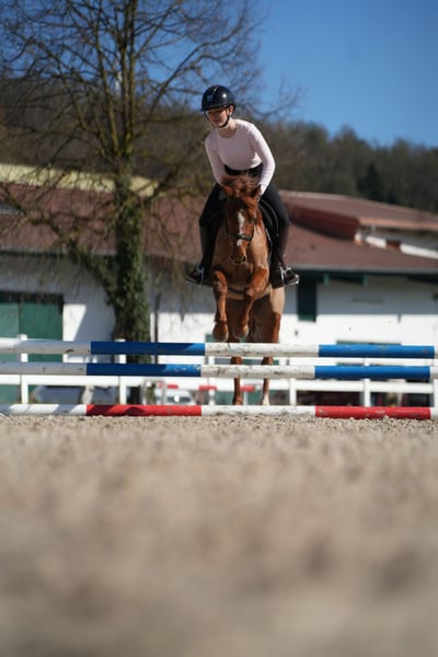 "Freddy," a 12-year-old gelding. Friendly and well-behaved, ideal for lead-rein and riding competitions. Also suitable for cavaletti lessons. A wonderful pony for children.