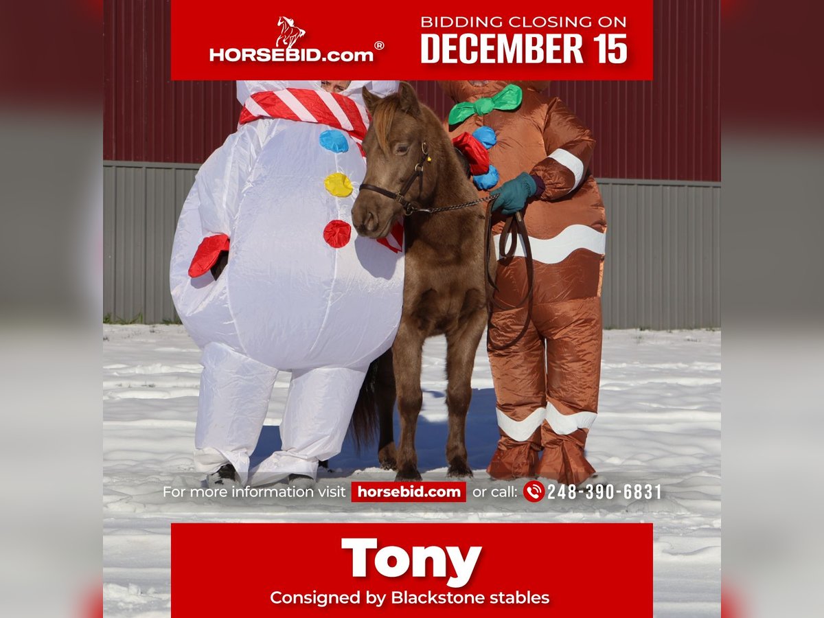 🎄𝐓𝐇𝐄 𝑯𝒐𝒍𝒊𝒅𝒂𝒚 𝐂𝐋𝐀𝐒𝐒𝐈𝐂🎄 Happening now thru MONDAY | DECEMBER 15th - Available EXCLUSIVELY on HorseBid's website! For more details and to register visit: www.Horsebid.com CONSIGNOR CONTACT: Blackstone Stables 248-390-6831 LOCATION: Howell MI BREED: Welsh REGISTERED: No COLOR: Champagne HEIGHT: 12.1 AGE: 5 GENDER: Gelding Stop your scrolling! Here is the ultimate safe AND talented pony with show experience and trick training! I’m proud to introduce and offer Tony The Pony! He is the pony that kids dream of owning and that parents trust to keep their kiddos safe. Tony is a unique champagne color with a beautiful thick mane and tail. He is 5 years old and stands a stout 12.1hh. Tony is a pony anybody can ride! He walk trot and canters on a loose rein, steers with leg and seat, has flying lead changes, and has excellent breaks. For the last couple months, Tony has been working in our lesson program teaching all types of riders including the first timers to the more advanced students that jump and show. Tony has attended several schooling shows! He performed well in the chaos and won a few blue ribbons! Tony also rides western! He trail rides like an old pro. Nothing phases him out in the woods. He’s seen it all from the hills, creeks, ponds, thick brush, logs, mud, and wildlife. Just when you think Tony couldn’t get any better well he is also trick trained! He knows how to sit and lay down on command. A tap on his left shoulder blade or on his left front pasture and he lays right down to get on or off. Tony has wonderful ground manners. He will ground tie, cross tie, or tie to a post and stand all day to be groomed. He also stands for other things like saddling, farrier, mounting/dismounting, bathing etc. He is also well broke to ride. Hook him up and head to town, a parade or take him sledding in a snowy day, he’s game to do it! He is a finished, safe, quiet, bombproof pony with absolutely no holes in his training! On top of that he has the talent and training to take your young rider to the winners circle. What more could you want in a kids pony?!?!? Come meet Tony and he’s sure to steal your heart! Located in Howell Michigan