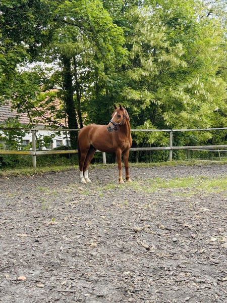 Spirit ist ein 15 jähriger, 150cm großer, sensibler Wallach, der einen einfühlsamen und konsequenten Menschen an seiner Seite braucht. Er hat im Umgang seine Schwierigkeiten und reagiert sensibel auf Veränderungen. Mit klaren Strukturen, festen Routinen und Vertrauen kommt er aber gut zurecht und zeigt dann, wie lernwillig und aufmerksam er sein kann. Unter dem Sattel kann Spirit nur bedingt als Reitpferd genutzt werden, da er schnell mit Anforderungen beim Reiten und auch im Alltag überfordert ist. Er braucht einen sehr feinfühligen, erfahrenen Menschen, der ihm Sicherheit und klare Strukturen gibt. In den richtigen Händen kann er aber auch unter dem Sattel schöne Momente schenken. Spirit ist auf E/A-Niveau in der Dressur ausgebildet. Er eignet sich ideal für Menschen, die Freude an Bodenarbeit, Longenarbeit und einer engen, vertrauensvollen Beziehung zum Pferd haben. Gesundheitlich ist er seinem Alter entsprechend gut beieinander. Im letzten Jahr wurde bei ihm erstmalig leichtes Asthma festgestellt, das wir inzwischen sehr gut im Griff haben. Er läuft barhuf und ist aktuell nachts in Boxen-haltung, tagsüber auf Paddock/Wiese. Eine Offenstallhaltung wäre ebenfalls gut denkbar. Ich wünsche mir für Spirit ein liebevolles, ruhiges Zuhause, in dem er verstanden wird, nicht überfordert wird und zur Ruhe kommen darf.