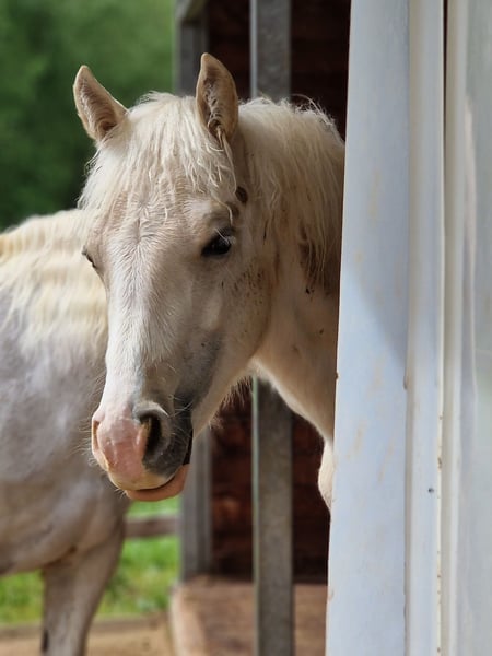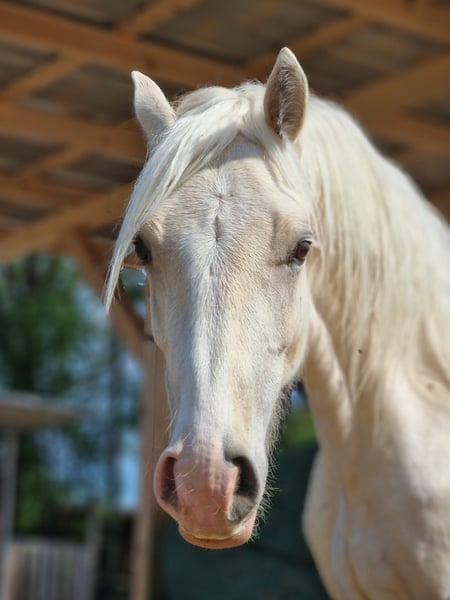 Der kleine Sonnenschein "Theo" (geb. 6/2023) sucht ein tolles Zuhause. Er ist ein lieber Schatz in einer traumhaften Creme-Sonderfarbe. Er wächst in einer Wallach- und Hengstherde auf und kennt das Fohlen-ABC. Schmied, Hänger fahren, Medical Care, Anbinden, Putzen usw. gehören natürlich dazu. Selbstverständlich wird er regelmäßig entwurmt und dem Schmied vorgestellt. Sein geschätztes Endstockmaß beträgt 1,50 m. Theo ist ein neugieriger, mutiger Kerl, der später mit seinem Reiter sicher durch dick und dünn geht. Er glänzt nicht nur durch seinen Charakter und seine wunderschöne Fellfarbe, sondern hat zusätzlich eine hervorragende Abstammung, die sich sehen lassen kann: Vater ist Friedrichshof Hot Twix - Bundessiegerhengst 2019, Mutter Legendary Golden Touch von Randeck Pandur. Seine Gänge sind überdurchschnittlich gut und sein Gebäude sehr harmonisch. Er steht hier zur Aufzucht und wird im Auftrag der Besitzerin/Züchterin verkauft. Theo ist Ende Oktober 2024 kastriert worden und ist folglich Wallach. Gerne kann er bei seinen Freunden zur weiteren Aufzucht bleiben und hier einen pferdegerechten, professionellen Start in das Leben als Reitpferd erfahren (siehe Danny Voss WesternClassic Instergram unter @danny.a.voss.) Diese Pferd wird privat verkauft und nicht gewerblich!