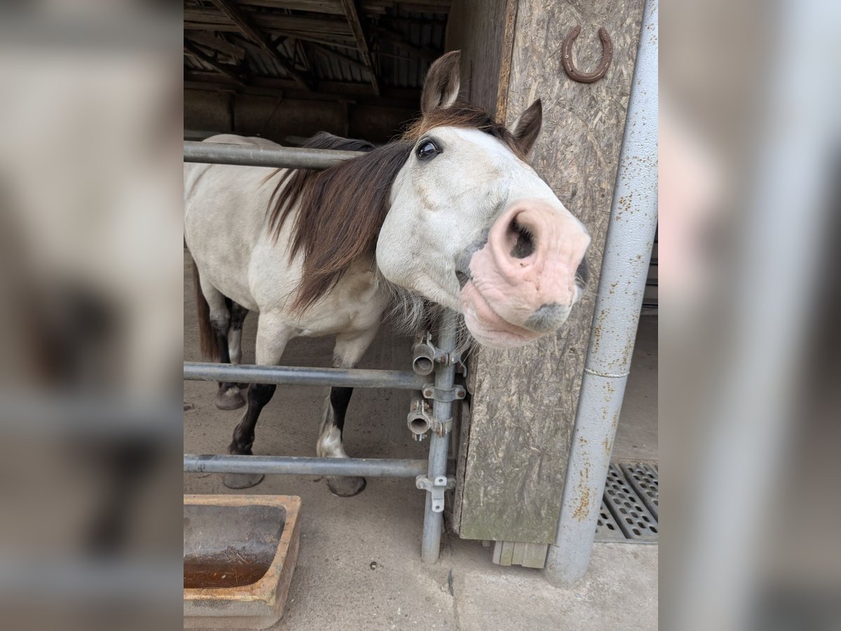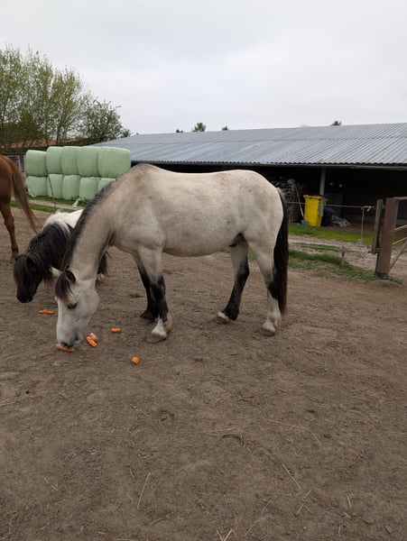 Das ist die Gelegenheit für Leute, die ein unverbrauchtes Pferd zum Selbstausbilden suchen und noch dazu mit toller Optik. Es fällt mir sehr schwer, mich von meinem Pferd zu trennen, aber er hat mehr Förderung verdient, als er sie derzeit von mir bekommen kann. Norvys ist bei mir, seit er 7 Monate alt ist und hatte seither viel Zeit, sich einfach pferdegerecht zu entwickeln und hat nie schlechte Erfahrungen gemacht. Eckdaten: Wird im Juli 7 Jahre alt, Stockmaß ca. 150 cm Steht derzeit in landwirtschaftlichem Betrieb im Offenstall und auf Weide, kennt keine Boxenhaltung oder Eindecken, ist Hunde, Schafe, Katzen, Hühner und landwirtschaftliche Großgeräte gewöhnt. Lebt aktuell in kleiner Wallachherde und ist bestens sozialisiert, eher rangniedrig. Bekommt ausschließlich Heulage, frisst aber auch Heu und Silage. Gesundheit: kennt den Schmied, ganz brav beim Tierarzt, Zähne erst gemacht, aber nie große Probleme gehabt, gute Hufe, war einmal bei der Ostheopathin, keine Probleme diagnostiziert, hatte eine längerwährende unerkannte Selenunterversorgung-wird daher dauerhaft mit Selen-Emulgat versorgt, seither keine Probleme mehr mit Fellwechsel und Kotwasser. Durchgeimpft auch mit West-Nil. Läuft barhuf. Bisherige Ausbildung: am Boden gearbeitet, im RoundPen longiert frei, an Einfachlonge, Doppellonge, mit Fahrzügel angetestet, kennt Longiergurt und Sattel, sowie Dreieckszügel; bisher gebisslos mit Kappzaum, Sidepull und Bitless Bridle gearbeitet; baumlosen Sattel von Barefoot verwendet. Hört gut auf Stimmkommandos, gutte Grundgangarten, gut ausbalanciert, kennt Spaziergänge im Gelände. Habe ohne Sattel schon drauf gesessen, hat er gut mitgemacht. Charakter: zuckersüß, neugierig, aufgeschlossen, möchte beim Training gefallen, möchte alles richtig machen, einem immer zugewandt, manchmal ein Clown, lässt sich überall anfassen, Putzen kein Problem, steht still, Verladetraining ist schon eine Weile her, hat aber gut funktioniert, mag Kinder, bewegt sich gern ohne eilig oder gar stürmisch zu sein, lernwillig. Sonstiges: hat volle englische Papiere der Welsh Cob Society, stammt aus Cornwall/England, habe ihn direkt von der Züchterin gekauft Was ich mir für ihn wünsche: jemanden, der ihn als Freizeitpartner fördern kann und mehr Zeit für ihn hat als ich. Eine weiterhin schonende Ausbildung vielleicht in mehreren Sparten (Dressur, Western, Fahren ...), er wäre sicher für vieles geeignet, ein typischer Welsh Cob eben. Ihm macht Wetter (Sonne, Regen, Schnee...) nichts aus, ein Offenstall wäre daher schön. Da mir sein Wohl am Herzen liegt, gilt Platz vor Preis. Die komplette Ausrüstung sowie Putzzeug kann mitgegeben bzw. mitverkauft (Sattel + Sidepull) werden. Da ich telefonisch nicht immer zu erreichen bin, kontaktiere mich bitte per WhatsApp unter 0176-55561379