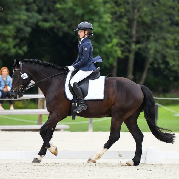 Clark Kent – a 7-year-old gelding, Welsh Section D pony, seeking a new, responsible home. He has a pure Welsh Pony pedigree but qualifies as a small horse with a height of 155 cm. A beautiful, handsome horse with a friendly and approachable temperament, suitable for a calm rider or an older teenager with good riding skills. He has a strong character but is intelligent and quick to learn. He is in consistent training. He requires precise aid application from the rider, has a steady rhythm, and is very focused and ambitious during jumping. His sire: Sydenham George, who won the Polish Cup in the final at 120 cm. Skills: • Competed in dressage at L and P levels • Currently riding at a level equivalent to N • Great jumping potential – jumps small obstacles and works on cavalletti, currently focused on dressage Health and care: • Never injured, healthy, no history of illnesses • Regularly dewormed • Teeth checked and treated annually • Shoeless He is paddock-kept and integrated into a herd without issues. A horse with significant jumping potential and good pedigree, suitable for further development in both jumping and dressage. More information available via private message.