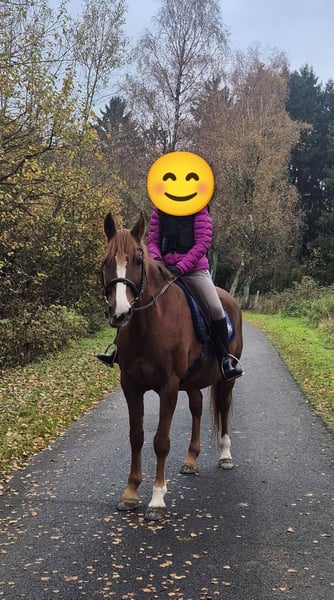 Welsh-Cob-Stute „Debora“ – zuverlässige Freizeitpartnerin für die ganze Familie Rasse: Welsh Cob Alter: 12,5 Jahre Stockmaß: ca. 150 cm AKU: vorhanden 4600,- ✨ Beschreibung: „Debora“ ist eine ausgesprochen brave und liebe Welsh-Cob-Stute, die mit ihrem ehrlichen Charakter überzeugt. Sie ist im Umgang absolut unkompliziert, menschenbezogen und geduldig – ideal auch für Wiedereinsteiger oder Familien. Unter dem Sattel zeigt sie sich zuverlässig und brav. Debora kennt den Reitplatz ebenso wie das Gelände und ist dort souverän unterwegs, ob alleine oder in der Gruppe. Auch kleine Sprünge nimmt sie gerne und gelassen. Ein echtes Allround-Freizeitpferd, das Freude macht! Ideal für Reiter, die: ein verlässliches, braves Freizeitpferd suchen, das sicheren Spaß sowohl im Gelände als auch auf dem Platz bietet. Unsere Pferde werden regelmäßig: – entwurmt – vom Schmied betreut – osteopathisch kontrolliert Hofladen: Westernsättel, Trensen & Zubehör Transport und Equipment nach Wunsch günstig organisierbar Unser Service: ✅ 3 Monate Umtauschrecht ✅ Proberitt: 35 €, jedes weitere Pferd 25 € (beim Kauf am selben Tag verrechnet) ✅ 100 € Sofort-Rabatt bei Abholung/Transport am gleichen Tag ✅ Ehrliche und persönliche Beratung Anfragen bitte ausschließlich telefonisch: 0171 – 4001968 Erreichbar täglich von 8–20 Uhr ⚠️ Keine E-Mail oder WhatsApp ⚠️ Alle Angaben ohne Gewähr