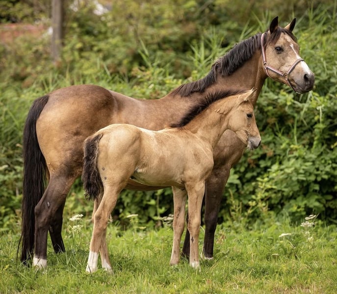 Mexy Nova RSP, Welsh Op 15 mei 2025 is ze geboren. Een merrie veulen van Dallmayr K uit vogelenzang’s Nienke (v. Orchard Boginov) Ze is een sterk lief knap valkkleurige merrieveulen naar verwachting een D pony word. Haar moeder vogelenzang’s Nienke heeft meerdere goedgekeurde hengsten en fijne sportpony’s gegeven. Mexy kan extra bewegen, komt dagelijks in contact met wandelen en is ze correct, ook poetsen vind ze heerlijk en houd van aandacht. Is absoluut de moeite waard om op te laten groeien als kinder-sportpony of fokmerrie. Voor meer vragen stuur gerust een berichtje (: