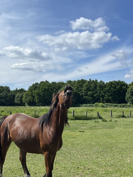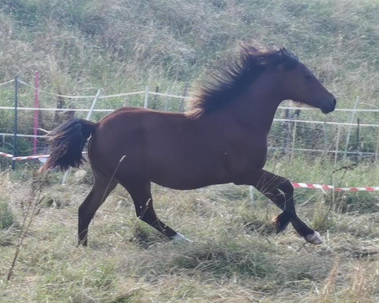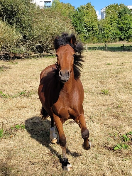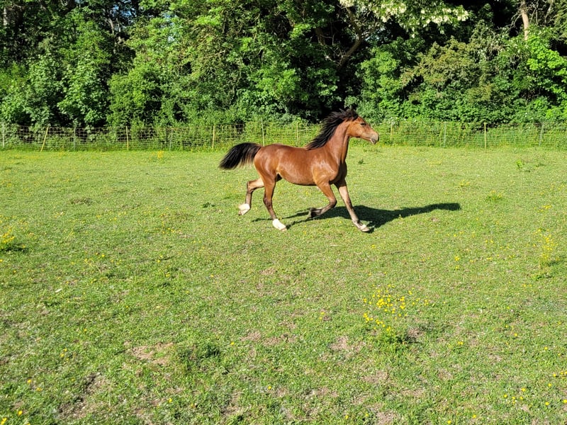 I am offering my beautiful 2-year-old Welsh Cob mare (born June 2023). I believe she will reach her full size. Currently, she is kept outdoors almost around the clock but is also familiar with box stall housing. In the future, I would prefer her to be kept in an open or active stall, as she is much happier outside. She is very open, people-oriented, and curious. She knows the basics: standing at the grooming area, being handled by the farrier, and she already goes on small walks. She is also familiar with trailer loading. She is completely fence-sure and very easy to handle – even in mixed herds. She knows the veterinarian and is regularly dewormed and vaccinated. Please feel free to contact me with any questions or if you're interested!