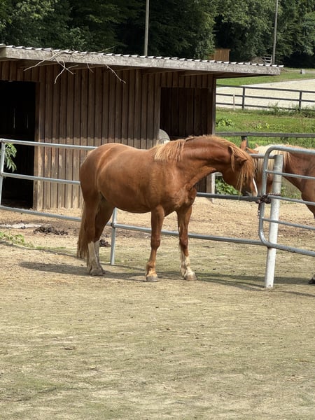 Filigri is a typey Welsh Cob young mare, she is not only docile, but also really pretty. She lives together with her mother and her big sister in our mixed mare herd and is characterized by cheerfulness, friendliness and a very pleasant nature and temperament. Although she is still growing, her movements are tactful, lively and light-footed. She is very sure-footed, just like her successful parents and siblings. Filigri is uncomplicated, has never been visibly ill and has been regularly wormed and vaccinated. An all-round great partner to experience a wonderful time together. We would wish her a friendly, harmonious new home.