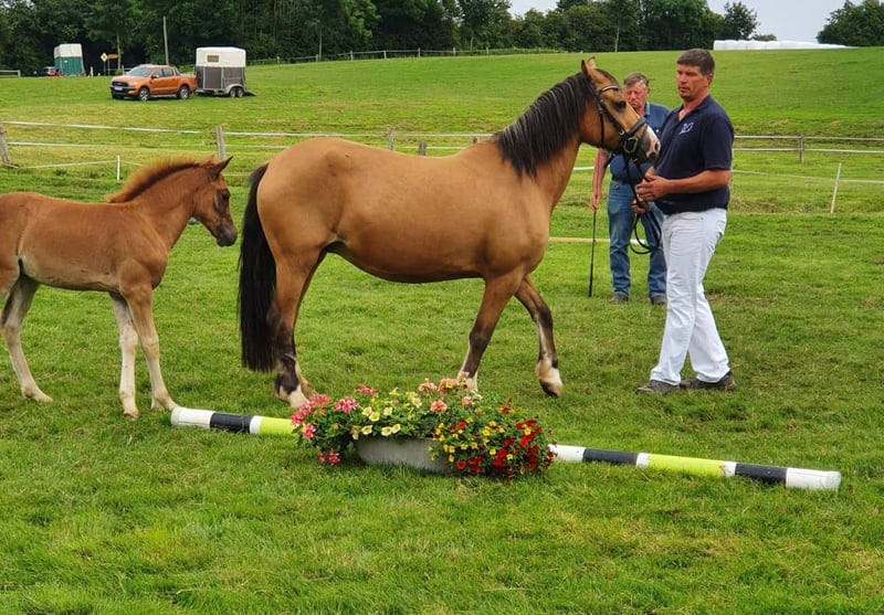 En venta por encargo: «Scarlett» es una encantadora y dulce yegua de 4 años de la raza Welsh Cob. Con una altura de 1,45 m, esta yegua castaña oscura cautiva con su hermoso rostro y sus excelentes movimientos básicos. Sin duda, un punto destacado son los pelos blancos en la crin y la melena claras, que la hacen aún más llamativa. Por supuesto, es tranquila en el remolque y en la herrería. Scarlett es hija de Crumpwell Benito y Möhlenbeeks Siegerin. De este pedigrí ya han surgido numerosos ponis de salto talentosos, y podemos imaginar que Scarlett también tiene mucho potencial en ese sentido. Durante su inscripción como potra, ya fue distinguida con una prima. El año pasado, fue montada con suavidad y preparada para la vida como pony de doma. Tras una pausa en su desarrollo en la pradera, ahora vuelve a comenzar su entrenamiento y continúa su formación, mostrando siempre una actitud dispuesta a aprender, motivada y abierta a nuevas experiencias. Durante la noche, permanece en box, y durante el día sale a pastar con una manada de yeguas, mostrando siempre una actitud social y amistosa hacia sus congéneres. Scarlett será una compañera fiable para toda la familia y solo se vende a manos amorosas. Para más información, videos o si está interesado, no dude en ponerse en contacto. El precio de venta aumentará con su progresión en la formación.