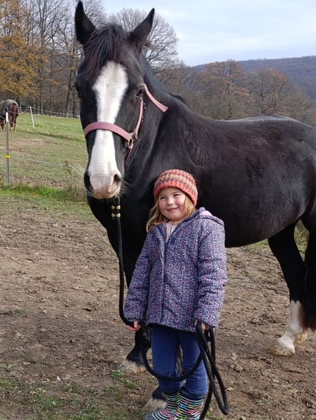 Hummel, also known as Biene Maja, is seeking a new home on behalf of her owner. She presents herself as a very sweet, attentive, and confident young mare, who is also quite sensitive. She has very comfortable gaits and enjoys riding out alone or in a group with a calm and self-assured manner. She is familiar with children and interacts kindly with them; she can also be led easily. However, she is not being offered as a children's pony. She still sometimes lacks the calmness and discernment to differentiate between situations where help is genuinely needed and those that happen unintentionally. She can become slightly anxious in such moments, but she is not dangerous. We still see her as a potential driving pony ;) but unfortunately, we are not the right trainers for that... A great trail riding horse. A superb ranch horse... A cool buddy for rides out in the countryside. Please message me if you have any questions.