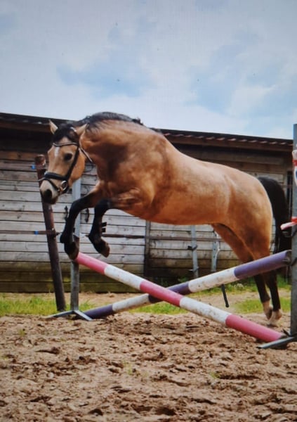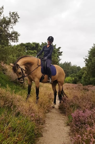 Fantastische bloedmooie allround pony te koop! Unieke kans voor een mooie, brave, allround en vriendelijke valk d-pony merrie van Cassanova du Bois! Violetta is een 7-jarige merrie, bij ons thuis geboren op 15 juni 2018 en opgegroeid tot een grote d-pony van 1.465m, Cassanova du Bois x Verdi x Priory Prickle. Violetta is een echte knuffel, in de omgang heel rustig en nuchter. Een pony die van veel afwisseling houdt en braaf is op vreemd terrein. Bosritten zijn haar favoriet, zowel alleen als in een groep is ze braaf en fijn te rijden. Violetta is fysiek goed sterk en in orde, zowel klinisch als röntgenologisch gekeurd incl hals en rug (foto's zijn beschikbaar). Violetta is veelzijdig inzetbaar en wordt op dit moment recreatief door een volwassene gereden, maar zou zeker ook geschikt zijn als doorgroeipony. Haar gangen zijn zeer comfortabel en met een fijne aanleuning is ze met een fijne zit heel stabiel en gemakkelijk nageeflijk te rijden. Haar moeder, Altrido's Olet's Floorretta, heb ik ook jaren zelf dressuurmatig gereden en tevens een kampioenstitel mee behaald in de L2 dressuur. Violetta haar vader, Cassanova du Bois was op 6-jarige leeftijd al Z1 dressuur geklasseerd tussen de paarden en heeft daarnaast het Sport predikaat NWPCS behaald in 2019 en al vele kampioenstitels behaald op keuringen en shows aan de hand en onder het zadel. Violetta haar volle broertje is op 3-jarige leeftijd verkocht en inmiddels succesvol in de sport als jumper/hunter-pony in Amerika! Violetta is altijd bijtijds geënt, bekapt, ontwormd en door de paardentandarts gecontroleerd. Ze is wat overgevoelig voor de knut mugjes in de zomer hier aan de bosrand. Met een vliegendeken is dit te verhelpen, maar de voorkeur gaat uit naar een nieuwe plek langs de kust, waar ze hier geen last meer van zal hebben! Violetta staat in Dwingeloo, Drenthe. Bij serieuze interesse graag contact opnemen via WhatsApp: +31 (0)6 39662163