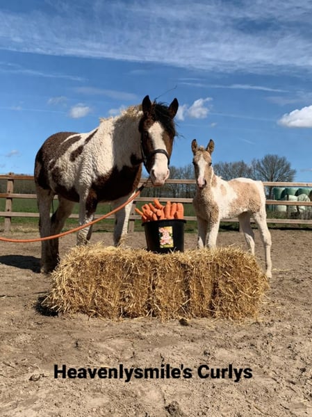 Heavenlysmile's Power Chick AKA Chickie 16 maart was het zover, Chris is bevallen van een prachtige valkbonte dochter met prachtige mini krullend haar, ze is zó mooi 🥰 Stond zeer snel op en vond direct het uier, ze heeft een geweldige start gemaakt! Chickie is geboren uit onze beste dieren en van vader en moeders kant uit meerdere door ons gefokte dieren, we weten dus precies hoe ze in elkaar zit ♡ Ze wordt mooi groot van maat: 1.60 Ze is zeer vriendelijk en gezellig nieuwsgierig, ze komt altijd bij je kijken! In haar beweging laat ze zien dat ze een ruime sterke pas heeft, niet zeer veel knieachtie maar een ruime zwevende. Een lust voor het oog en straks een genot voor het gebruik. Haar type vinden wij een droomtype, een mooie maat van 1.58/1.60 en stevig/barock gebouwd. Ze draagt het sp6 curly-gen. Ze wordt dus een prachtig sterke merrie met een uitmuntend mooi type, een prachtige kleur met swinters mini krulletjes en een geweldig karakter. Kortom een grote belofte voor de toekomst! Wil je meer informatie stuur gerust een berichtje, wij hebben op Facebook een fotoalbum en op het WhatsApp kanaal ook vele filmpjes!