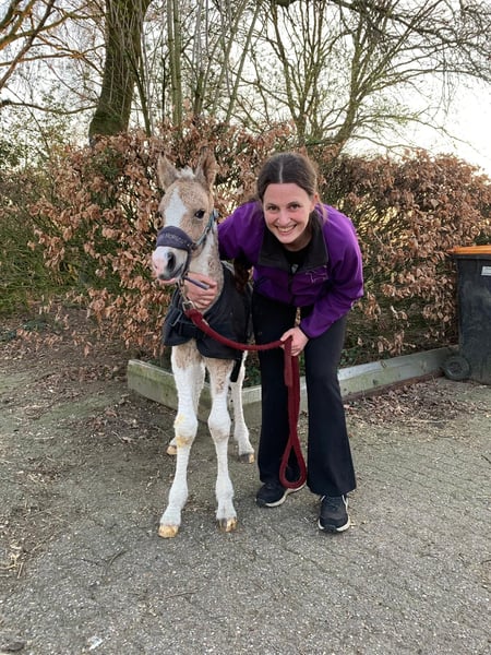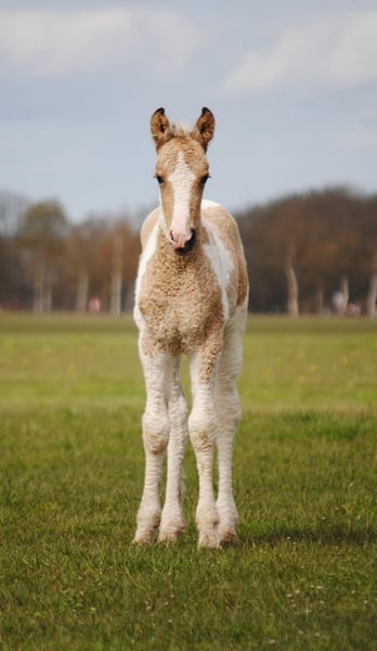 Heavenlysmiles Power Chick Auch bekannt als Chickie Am 16. März '26 war es soweit: Chris brachte eine wunderschöne, falbe gescheckte Tochter mit traumhaft lockigem Fell zur Welt. Sie ist sò schön 🥰 Sie stand sofort auf und fand direkt das Euter – ein großartiger Start! Chickie stammt von unseren besten Tieren und von mehreren Tieren aus unserer eigenen Zucht väterlicher- und mütterlicherseits ab. Wir wissen also genau, was in ihr steckt ♡ Sie wird eine stattliche Größe von 1,60 m erreichen. Sie ist sehr freundlich und angenehm neugierig; sie kommt immer, um nach einem zu sehen! Ihre Bewegungen zeigen einen raumgreifenden, kraftvollen Gang – nicht kniehoch, sondern eher schwebend und schwungvoll. Ein wahrer Augenschmaus und bald eine Freude in der Arbeit. Wir halten ihren Typ für einen Traumtyp: eine wunderschöne Größe von 1,58/1,60 m und ein robuster, eleganter Körperbau. Sie trägt das sp6-Gen für lockiges Fell. Daher wird sie eine wunderschöne, kräftige Stute mit einem außergewöhnlich schönen Typ, einer prächtigen Farbe mit leichten Winterlocken und einem wundervollen Charakter. Kurz gesagt: ein vielversprechendes Nachwuchspferd! Für weitere Informationen senden Sie uns gerne eine Nachricht. Wir haben ein Fotoalbum auf Facebook und viele Videos auf unserem WhatsApp-Kanal!