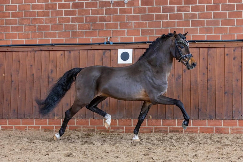 Premium Filly by Elite LH Stallion This filly captivates with her charm, expression, and quality. Her pedigree makes her suitable for sport, leisure riding, and breeding purposes. Her sire is the “Elite LH Halifax,” Welsh-B, bay, standing approximately 14.2 hh. Halifax is a FN-Bundes champion stallion in show jumping; sire of over 30 licensed stallions, including 9 premium or reserve champions, at least 26 state premium mares, 3 Bundeschampions, and 2 vice-Bundeschampions. The dam, “V. Magic Lady,” Welsh Cob, D-brown, 14.8 hh, was very successfully presented at breeding shows in Germany, the Netherlands, and Belgium at a young age. She was overall champion foal, class winner, and champion Welsh Cob, coming from a highly successful lineage. Her grandsire, “Trevallion Picasso,” was repeatedly the most influential sire of ridden Welsh Cobs in Great Britain for several years. Additionally, on her dam’s side, there are two lines of “Derwen Dessert Express.” This influential stallion has been exceptionally successful in Welsh Cob breeding, and his offspring are also highly successful and sought-after under saddle. The filly, born on May 7, 2025, is bay with a small star and four white legs. As an adult, I expect her to reach approximately 14.8 hh, similar to her dam. In the last photo, you can see her sire: the elite stallion HALIFAX, at the impressive age of 29, in excellent health. Please feel free to contact me with any questions; call me at 0178 45 07 123 and leave a message if needed. Thank you!