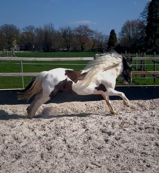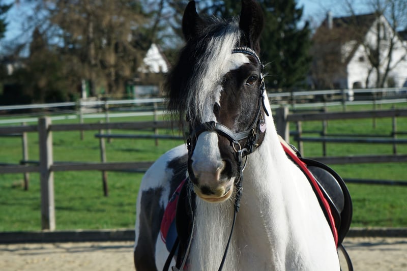 Maggy ist ein absoluter Blickfang – viele sagen, sie sieht aus wie ein Schleichpferd in echt. Mit ihrer besonderen Scheckung, der langen, vollen Mähne und ihrem ausdrucksstarken Auftreten fällt sie überall auf.