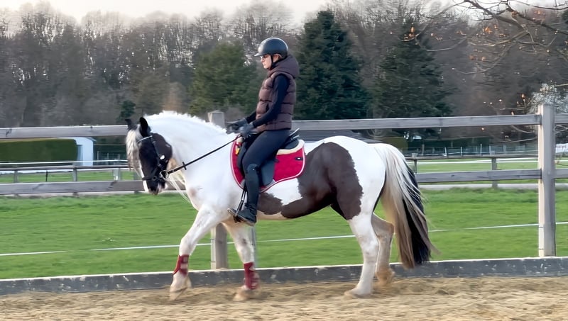 Unter dem Sattel steht Maggy noch am Anfang. Sie wird erst seit wenigen Monaten intensiver geritten und befindet sich daher eher auf dem Ausbildungsstand eines jungen, unverbrauchten Pferdes.