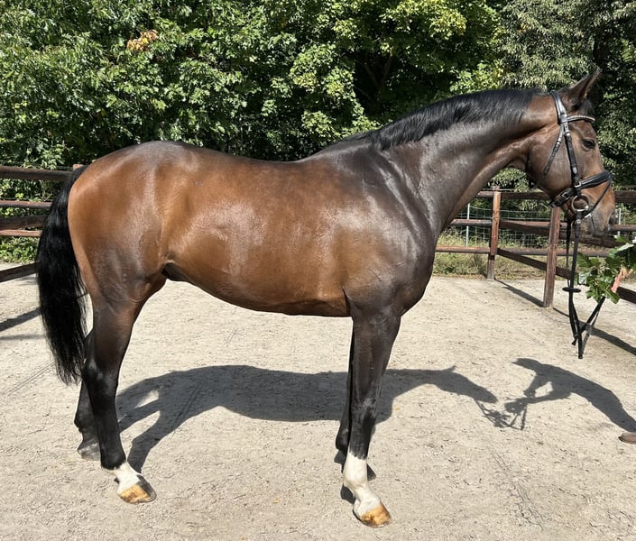 For sale is an impressive gelding, born in 2015. This charming bay horse not only impresses with his attractive appearance, but also with his remarkable dressage ability. This talented gelding impresses with his good basic gaits and balanced nature. He is the ideal partner for ambitious riders who value quality and reliability. His elegant movements and willingness to learn make him a real pleasure in the arena.