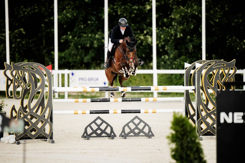 An eye-catching, well-muscled gelding with an affectionate temperament. Easy to handle in every aspect of daily care. He shows excellent jumping technique and a natural desire to approach the fence - a temperament horse with the potential to continue progressing in sport.