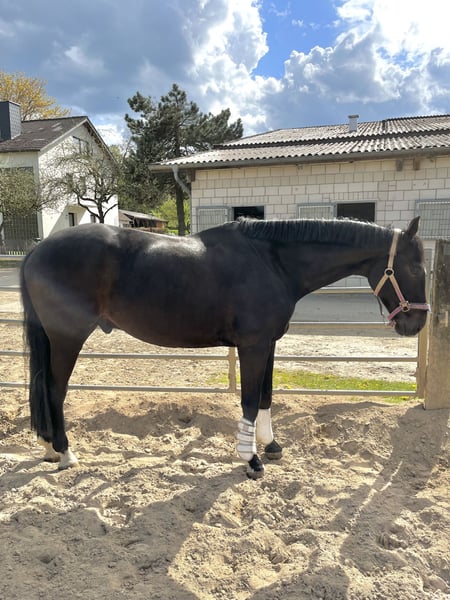 Zum Verkauf steht ein menschenbezogener und gut erzogener Wallach. Er ist im Jahr 2015 geboren und wurde damals direkt vom Züchter gekauft. Rocki wurde von seiner damaligen Reitbeteiligung im Springen gefördert und ist A** platziert sowie L vorgestellt. Kennt auch Geländehindernisse. Rocki hat ein angenehmes Go zum Sprung, zeigt sich beim Springen motiviert ohne heiß zu werden. Am liebsten hat er etwas Sicherheit von oben, bringt aber auch einen ehrgeizigen Anfänger durch den Parcours. Mich hat er als Reitanfängerin erfolgreich durch die ersten Springreiterwettbewerbe gebracht. Turniererfahren. Absolute Lebensversicherung auf vollen Abreiteplätzen. Abteilung gar kein Problem, egal an welcher Stelle. Verladefromm. Geht einwandfrei auf den Hänger. Längste Fahrt mit ihm betrug 6 Stunden ohne einen Mucks. Geländesicher. Egal ob Strand, Stoppelfelder, Wald, Straßenverkehr oder Hunde - Rocki liebt es draußen zu sein. In den Gruselecken schickt er am liebsten seinen Ausreitpartner vor. Alleine ausreiten wäre aber auch möglich. Anfängergeeignet. Rocki hatte bereits Reitstunden sowie an der Longe mit den Kindern. Rocki ist mein erstes eigenes Pferd, weshalb er mehr aus Spaß und Freizeit gefördert wurde, ohne große Leistungsorientierung. Er hat einen Rückenengstand sowie eine Verkalkung im Weichteil des Halses. Halswirbelsäule ist top. Die Verkalkung muss aufgrund der Traumata-Verursachung bereits beim Kauf vorgelegen haben. Bilder liegen vor. Mehr gerne auf Anfrage. Aus diesem Grund wird Rocki ausdrücklich nicht als Dressurpferd verkauft. Hier bringt er nicht das notwendige Potenzial sowie die Losgelassenheit mit. Da mein Herz allerdings für die Dressur brennt und ich mich in dieser Disziplin weiterentwickeln möchte, suche ich ein passendes und liebevolles neues Zuhause für Rocki, in dem er entsprechen seiner Stärken und Vorlieben gefördert wird. Videos können gerne per WhatsApp angefragt werden: +49 175 8472438 Anrufe unter: 01631804943
