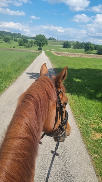 For sale is a 14-year-old gelding (approximately 165 cm tall). He is well-behaved under saddle, regularly shod, and good to load. In training, he shows himself to be very reliable: He is used in children's riding lessons on the lunge or free in walk and trot. He is always friendly and patient, even at children's birthday parties. In the field, he behaves well, whether led or under saddle. He can be easily led in the field by older children. He may occasionally buck in canter. Therefore, I see him more suited for experienced riders or as a great leisure horse for people with a bit more horse experience. It is very important to me that he finds a loving forever home and does not become a "trophy horse." He is a horse with heart, who appreciates a person that accepts him as he is and provides him with a nice home. For further inquiries, please feel free to contact me. Location: 82407