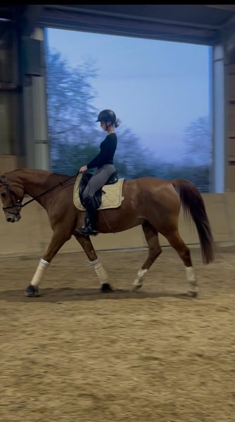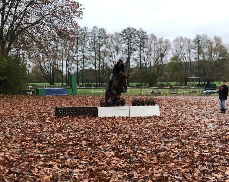 Nach langer Überlegung suchen wir für unseren 15-jährigen Westfalen Wallach Forcolino / Franz ein neues zuhause und liebevolle Hände. Er ist sicheres Springpferd, springt mit viel Freude und gibt dem Reiter Sicherheit. Er möchte immer auf die andere Seite, auch wenn er an ungewohnten Sprüngen schon mal guckt. Er hat gutes Springvermögen, viel Erfahrung und eignet sich daher gut als toller Lehrmeister für einen sportlichen Reiter, auch mit wenig Erfahrung im Springen. Er rettet jede Distanz und vergibt viele Reiterfehler. Insgesamt springt er auf gutem A/L Niveau. In der Vergangenheit ist er auch in der Vielseitigkeit geritten worden, dies haben wir aber nicht weiter gefördert. In der Dressur befindet sich auf gutem A / L Niveau mit Potential für mehr. Zum regelmäßigem Trainingsprogramme gehören, Bodenarbeit, longieren, Freispringen, sowie regelmäßige Lehrgänge zum Working Equitation – hier lernt er schnell und macht konzentriert mit. Er geht sehr gerne ins Gelände, zeigt sich dort unerschrocken, macht jeden Quatsch mit und ist immer gut händelbar. Er geht alleine oder in der Gruppe raus, kennt Straßen, Landmaschinen, Trecker, Hunde und ist entspannt dabei. Im Umgang ist er ein Schatz, ob beim Spazieren gehen, putzen, grasen sowie im Umgang mit Kindern. Mit seinem wunderbaren Charakter ist er ein treuer Kumpel und toller Partner an der Seite seines Reiters. Daher braucht er auch seine Bezugspersonen, die er kennt – dann ist er absolut loyal ist und für jeden Spaß zu haben. Er ist das absolute Verlasspferd, zeigt uns allerdings, dass er den Druck auf Springturnieren nicht mehr möchte. Im Parcours wird er gestresst, verweigert und verfällt in alte Abwehrmuster einschließlich steigen, was er sonst nicht tut. Wir möchten ihm Springturniere nicht mehr zumuten. Dressurprüfungen, Lehrgänge, Auswärtstraining sind kein Problem. Dies ist der Grund, warum wir ihn verkaufen. Der größte Wunsch meiner Tochter ist weiterhin Turniere reiten zu können, sich dort weiterzuentwickeln. Klinisch ist er einwandfrei. Es liegen aktuelle Röntgenbilder (Rücken) aus März 2025 vor – ohne Befund, keine Arthrose oder Auffälligkeiten. 2021 haben wir eine große AKU gemacht, ohne Befund. Er geht problemlos auf den Hänger, ist schmiedefromm. Er ist vorne beschlagen, kann bei anderem Untergrund aber auch 4-fach beschlagen werden. Er steht zurzeit in einer Paddockbox, mit täglichem Paddock oder im Sommer mehrere Stunden in der Wallachherde auf der Wiese. Wir wünschen uns ein 5 – Sterne zu Hause in dem Franz Familienmitglied wird, mit einem liebevollen Umgang und wo er weiterhin sportlich und fair geritten und gefördert wird. Er wird ausschließlich in gute und verantwortungsvolle Hände abgegeben. Bei ernsthaftem Interesse freue ich mich über eine Nachricht oder Ihren Anruf: 0176/98809156 Weitere Informationen, Videos und Fotos auf Anfrage. ❌ keine Händler-Anfragen ❌ kein Schulbetrieb ❌ zur Verfügung stellen, ist ebenfalls keine Option