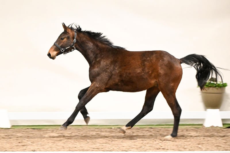 Total Toni is a two-year-old gelding from the young horse barn, still in full development. Even at this early stage, he demonstrates harmonious, balanced movement in all three gaits and impresses with his people-oriented, curious character. A young gelding who captures attention and brings joy at every moment. His pedigree speaks for itself: his grandmother, Fandela, is not only a Westphalian State Premium Mare but was also a finalist at the German Bundeschampionat in Warendorf at five years old and later successful up to S** dressage (Inter l level). His dam, Tilda, is doubly linebred to the world-renowned stallion and foundation sire Florestan through her sire Fahrenheit and grandsire Floresco. The sire, Total Diamond PS, a son of the legendary Totilas out of Bundeschampion mare Special Diva OLD, was bred as a future top star. He impresses with his expressive movement, consistently active hindquarters, and outstanding willingness to perform. During his performance test in Schlieckau, he achieved an average dressage score of 8.05 and was awarded the title of second Oldenburg Main Premium Stallion in 2023. Six of his sons have already been approved, including three premium stallions. Total Toni combines everything desired in a young, developing dressage talent: expressive, powerful gaits, excellent basic paces, curiosity, and a top pedigree with proven success in both sport and breeding.