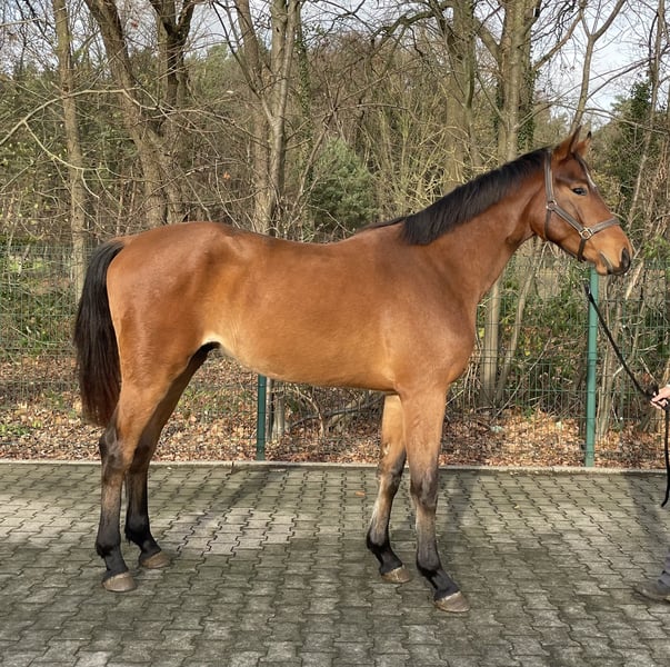Schöner Brauner Wallach geboren 03/2023 mit drei besseren GGA ausgestattet, sowie einen tollen Körperbau. Stammt von Escolar x Cristallo I ab und ist derzeit 1,68 groß. Kommt direkt aus der Sommerweide und ist seit kurzem im Stall.