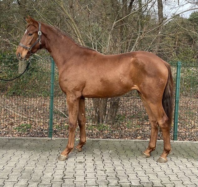Schicker bald 3-jähriger Fuchswallach von Va Bene x Chagall Mit drei besseren GGA und einen lieben Charakter. Er wurde vor kurzem von der Sommerweide in Stall reingeholt, und kennt somit noch nicht viel. Ein tolles Nachwuchspferd mit einer Größe von 1,67m