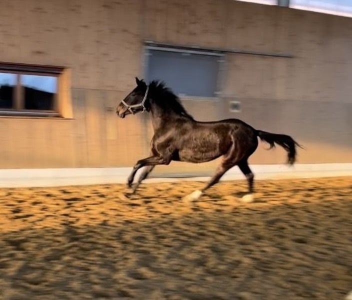 Traumhaft schöner 3-jähriger Wallach von Escaneno x Belantis I mit drei sehr guten GGA und einen super Charakter. Derzeit 1,64m groß und roh. Ist noch ganz „grün“ da er erst seit kurzem vom Laufstall/ Weide in den Stall reingeholt wurde.