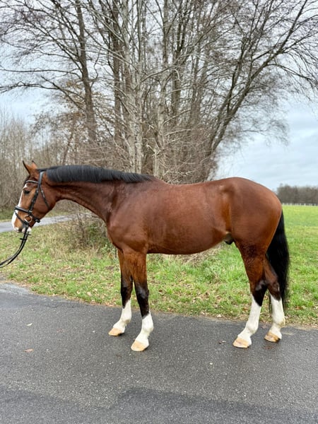 Directly from the breeder, a truly exceptional gelding is available for sale, boasting multiple outstanding attributes. His pedigree reads like a walk through the top percentages of show jumping sires. The breeding relevance of Cornet and Balou is well known, and it would be beyond the scope of this ad to elaborate further. However, his dam is also a breeding jewel of the future, as her second foal has recently been licensed and sold to France. Consequently, this gelding is the proud brother of licensed stallions on both sides of his pedigree. This overall package supports the belief that, with proper training, he can achieve great success in sport. The same promise is reflected in his performance over fences during free jumping. Careful, focused, and with surprisingly impressive strength for his age, he clears each line with ease. When working on the longe line or under saddle, he is highly attentive, motivated, and diligent. He has not yet fully developed control over his large body, as he is still young, and a few weeks under saddle will help him gain the necessary routine. His coat color, which is quite unusual for a typically straightforward Cornet son, is the perfect finishing touch on this promising package and ensures instant recognition. He has been examined radiologically with no findings and is otherwise healthy, robust, and sound. He was raised appropriately in herds on summer pastures and in open stalls during winter. He is absolutely loadable, even alone, and also shoe-friendly. He is socially compatible with other horses. His teeth have recently been checked. If interested, please feel free to contact us with any questions or to arrange a viewing appointment.
