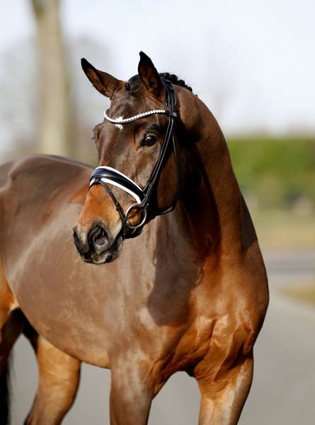 Sportpferd mit allen Vorzügen! Noch voll in der Entwicklung stehender Jüngling mit qualitativen Möglichkeiten, die ihresgleichen suchen! Erst wenige Zeit in Arbeit und bereits jetzt hat sich dieser willige und leistungsbereite Youngster so toll entwickelt, dass man ohne viel Phantasie die weitere , sportliche Laufbahn erahnen kann. Im Umgang hochsympathisch, umgänglich und schlichtweg ein Goldstück. Aus solider und gesunder Aufzucht mit ausreichender Entwicklungszeit. Gute Röntgenbilder auf Wunsch zum Versand. Ein ganz hochkarätiges, noch unentdecktes und vor allem gereiftes Dressurpferd in Körqualität und mehr! Gerne in fördernde, aber auch gute!! Hände.