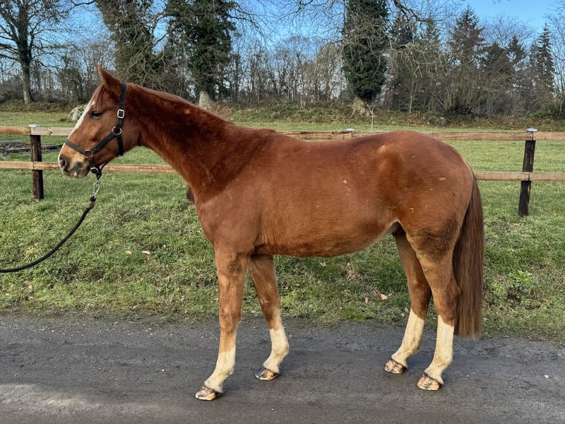 🏷️ À vendre – jeune cheval de sport 🐴 Benoit BZH, 4 ans, Westfalien 🧬 Origines : ➡️ Benicio x Florestan I 📏 Jeune cheval de 4 ans, toisant 1m65, bien construit et harmonieux, avec de bons clichés radios. 🔧 Déjà bien avancé dans le travail pour son âge, il montre de très belles dispositions. 💪 Travail & aptitudes : * 🟢 Prêt sur un tour à 1m, avec calme et facilité. * 🏟️ A déjà participé à une compétition de formation, en se montrant appliqué et serein. * 🚀 Très franc à l’obstacle. * 🔄 Polyvalent, bon prospect pour du CCE. * 📈 Apprend vite et progresse rapidement. ❤️ Caractère & comportement : * 😊 Cheval gentil, facile au quotidien, bien dans sa tête. * 🧼 Agréable aux soins, respectueux et simple à manipuler. * 🌳 Sort en extérieur sans difficulté, passe partout. * 🎯 En environnement nouveau ou en concours : reste égal à lui-même, sans stress. * 🚚 Monte facilement en van ou camion. * 🌾 Vit actuellement au pré. 🎯 Pour quel cavalier ? Idéal pour un amateur souhaitant un jeune cheval sûr et bien démarré, pour se faire plaisir en concours sans tracas. 📍 Essai : Saint-Georges-de-Reintembault (35), à 15 min de Fougères 💶 Prix : 12 000 € (pas de TVA)