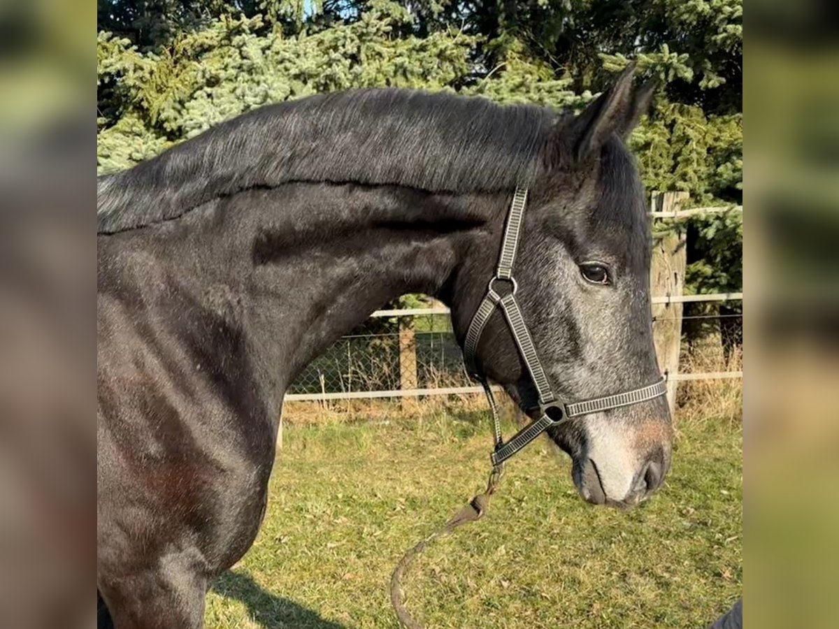 Indiamo is a large gelding (3 years old, dark gray) and is a descendant of the Trakehner Invincible Sir. The Thoroughbred Arabian stallion Dschehim ox provides a valuable blood connection through the dam's side, which makes the pedigree of this colt highly interesting. Furthermore, on the dam's side, we find Larome (Landgraf - Roman (by Ramzes xx) - Manometer xx) - Wanderer (Wagner (by Wendekreis) - Glander) - Pik Koenig. The mare line includes dressage and show jumping horses, as well as licensed stallions. The mother is a state premium mare and was third place in the foal championship in Neustadt/Dosse for dressage-focused filly foals. If you are interested, please contact us only by phone or via WhatsApp or SMS at the number 0049 1725488966.
