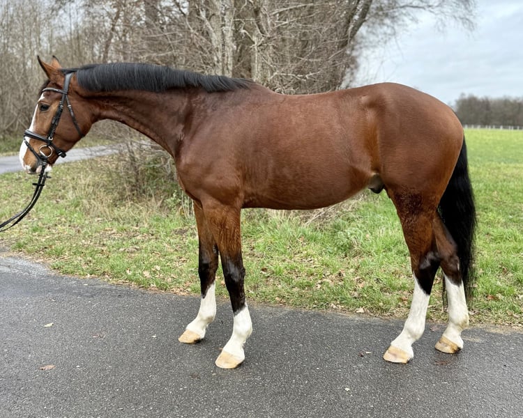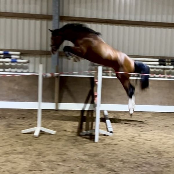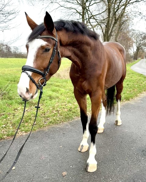 Directly from the breeder and firsthand, a very special young horse is available for sale. His training began as a stallion prospect for pre-selection. Even at a young age, he was well-behaved and focused, handling all exciting appointments with ease. Later, during initial riding, he remained equally obedient and trustworthy. Throughout his time under saddle, he has never bucked or reared. Currently, he has proven to be traffic-safe (including tractors, trucks, etc.) and is equally well-behaved in the outdoor arena, riding halls, or large stadiums, whether ridden alone or with other horses. He is currently ridden without lunging, directly from the farm onto a road, crossing a bridge about 700 meters to the riding club grounds, as if it were second nature, even on a long rein. His pedigree (Cornet Obolensky x Balou du Rouet x Lord Caletto x Pilot) reads like a walk through the top percentages of show jumping sires. The breeding relevance of Cornet and Balou is well known, and it would be too extensive to elaborate here. His dam is also a breeding jewel of the future, as her second foal was recently licensed and sold to France. Thus, this gelding is the proud brother of licensed stallions on both sides of his pedigree. This overall package supports the idea that, with proper development, he can make significant progress in sport. A current veterinary certificate (legs, back) is available, and he is otherwise healthy, robust, and solid. He was raised appropriately in herds on summer pastures and in an open stable during winter. He is absolutely load-friendly, even when alone, and also shoe-friendly, including hot shoeing. He currently wears shoes due to frequent road work, but under normal workload, he is comfortable barefoot and has no conformational issues. He is socially very compatible and gets along with everyone. The price is discounted considering his quality, as we do not have the capacity to further develop him ourselves. He is well-behaved under amateur riding but has not yet jumped under saddle. For further questions or to arrange a non-binding trial ride, please feel free to contact us. Viewings are available at short notice and can be scheduled flexibly.