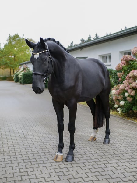Here is a well-behaved, handsome, and relaxed Westphalian gelding – an impressive black stallion with great potential for dressage. This elegant Westphalian gelding, born in 2021, impresses with his striking appearance and friendly nature. Standing at 17.5 hands, he is perfect for ambitious riders who value quality and elegance. The gelding is ideally suited for dressage and already shows considerable talent in training. His balanced temperament and willingness to learn make him a reliable partner for the demanding rider. He has been gently started and is familiar with the farrier, machinery, and loading! X-rays from 2024 are available and can be sent upon request. He is very comfortable to sit, making riding lessons and basic gaits enjoyable. If interested, we are happy to provide further information and arrange a viewing. Contact us to learn more about this promising, elegant horse!