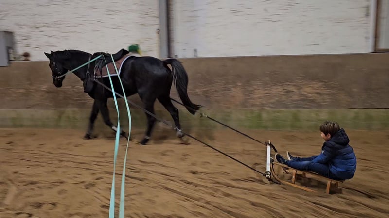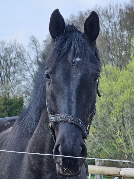 Seit guten 40 Jahren bin ich nun schon Pferde Mama und bin nun an einem Punkt in meinem Leben angekommen, an dem ich alle Verpflichtungen und Herausforderungen mit einem eigenen Pferd loslassen möchte. Daher steht nun nach ganz ganz langer und reiflicher Überlegung mein perfektes Traumpferd zum Verkauf. Ich lasse meinen außergewöhnlichen Wallach nun ganz schweren Herzens in liebevolle, fördernde und kompetente Hände weiterziehen. Meinen Wallach habe ich mit einem halben Jahr gekauft und ihn seitdem bestmöglichst mit viel Liebe und Geduld aufgezogen. Mit seinen jetzt bald fast 5 Jahren (geb. 03/21) hat er ein momentanes Stockmaß von 1,79 cm und steht noch im Wachstum bzw. in der körperlichen Entwicklung. Mit seiner Größe ist er eine Offerte für große Reiter. Er steht auf einem korrekten Fundament, verfügt über einen sehr guten Schritt sowie schöne, raumgreifende, schwungvolle, elastische Grundgangarten und ein sehr angenehmes Temperament. Mein Wallach ist ein wohlerzogenes, absolut braves, kopfklares, verlässliches und immer dem Menschen zugewandtes Pferd mit sehr viel Potential. Er bringt alles mit was man sich von einem Jungpferd nur wünschen kann. Er ist vollkommen unkompliziert im Umgang und bei der Arbeit. Er gehorcht super auf Stimme, arbeitet immer mit und möchte immer alles richtig machen. Er lernt unfassbar schnell, ist sehr intelligent. Im Umgang und beim reiten ist er meist cool und gelassen. Er ist einer von der entspannten Sorte. Er ist total neugierig und nimmt neues meist gelassen hin. Er schmust super gerne und ist dem Menschen gegenüber immer freundlich und aufmerksam. Er kennt alles was ein junges Pferd kennen sollte, im Umgang und Handling. Ich habe ihn stets schonend ausgebildet, ihm viel Zeit gelassen bevor ich z.B. überhaupt mit Longieren angefangen habe. Er kennt Bodenarbeit, Handarbeit, Spaziergänge und regelmäßiges Abschrecktraining, woran er viel Spass hat. Er lässt sich brav in allen Gangarten longieren. Auch mit anderen Pferden in der Halle ist er meist brav und gelassen und bleibt auch bei seinem Reiter/Menschen. Momentan wird er schonend weiter angeritten, alles angepasst und in kleinen feinen Einheiten immer pro Pferd. Er soll Spaß haben einen Reiter zu tragen. Er macht das alles brav mit, auch nach längerer Pause. Er vergisst nichts und macht willig mit was man von ihm möchte. Er steht aber momentan noch ganz am Anfang seiner reiterlichen Ausbildung und braucht nun einen Reiter, der ihm das nötige Grundwissen geduldig und liebevoll vermittelt und ihn weiter entsprechend seiner Talente fördern kann. Aus Zeitmangel ist er momentan nur sehr wenig unter dem Sattel, da wir immer zu zweit dabei sein müssen. Wir versuchen aber ihn regelmäßig dreimal die Woche zu reiten. An den anderen Tagen wird er vielseitig beschäftigt. Da ich ihn eigentlich auch als Fahrpferd nutzen wollte, ist er bereits auch schon mit Geschirr und Schlitten vertraut. Er zieht brav einen Schlitten oder das Gitter um die Hallenzu schleppen. Leider konnten wir das jetzt nach einem Stallwechsel nicht mehr weiter vertiefen. Ich habe meinen Wallach stets mit Ruhe und Sachverstand ausgebildet, denn er ist mein Freund und Partner, an dem ich lange Freude haben wollte. Ich habe ihn mit der bestmöglichen Sorgfalt und Liebe aufgezogen und möchte, dass er ebenso weiterhin behandelt wird. Ich mache viel Bodenarbeit, regelmäßiges Schrecktraining und auch Spaziergänge, damit er ein verlässlicher Geländepartner wird. Ebenso kann ich ihn alleine verladen und er ist sehr brav beim Schmied. Er hat sehr gute Hufe, so dass keine Hufeisen notwendig sein werden. Wir sind im Oktober von unserem kleinen Privatstall an einem großen Stall mit besseren Trainingsmöglichkeiten umgezogen und gewöhnen ihn im Moment an die Führanlage und an die alltäglichen Dinge der neuen Anlage. Dies meistert er ebenfalls ohne Probleme. Er kennt sowohl Boxenhaltung mit Weidegang, als auch Paddockbox und ganztägig raus und ebenfalls Sommerweide. Ich kann ihn mir sehr gut in einem Offenstall oder Aktivstall vorstellen, da er sich ohne Probleme sehr gut in eine Herde integrieren kann. Anderen Pferden gegenüber ist der stets freundlich, in der Herde gab es noch nie Probleme, er ist Rangmittig und kann sich sehr gut einordnen. Mein Wallach hat eine hervorragende Abstammung: Über seinen Vater Selectric (Kohlfuchs, Stockmaß 1,73 cm und Sohn des dreimaligen Weltmeisters Sezuan) schreibt das Landgestüt Westfalen: SELECTRIC ist ein Eyecatcher. Nicht nur durch seine herrliche Farbe und seinen charmanten Habitus weiß er zu begeistern. Stets präsentiert er sich schwungvoll, raumgreifend mit Elastizität und im Gleichmaß. Mit einer dressurbetonten Endnote von 8,49 schloss er 2018 seinen 14-Tage-Test in Adelheidsdorf als Drittbester ab. Mit einer 9,75 wurde ihm vom Fremdreiter eine nahezu perfekte Leistung attestiert. Ebenfalls punktete er jeweils mit einer 8,5 für Leistungsbereitschaft und Galoppade. In der Saison 2020 qualifizierte sich SELECTRIC für die Teilnahme am Bundeschampionat. 2019 war er siegreich in einer Reitpferdeprüfung und absolvierte seinen Sporttest Dressur mit einer Gesamtnote von 8,19. St.Pr. St. Debby ist Vollschwester zu zwei gekörten Hengsten und einigen im Viereck erfolgreichen Dressurpferden. Großmutter St.Pr.St. Walhalla absolvierte eine exzellente Leistungsprüfung mit 8,28. Weiterhin ist die St.Pr.St. Andorra Mutter zum gekörten Montserrat sowie erfolgreichen Springpferden. Die Mutter, mit einem Stockmaß von 1,68 cm, stammt ab von Rubitano und war selbst erfolgreich in der Dressur bis zur Klasse L. Rubitano stammt ab von Rubin-Royal. Dieser Oldenburger entstammt der Passerpaarung der Elite-Stute Rumirell mal Rohdiamant, aus der insgesamt sechs gekörte Vollbrüder hervorgingen. Rubin Royal platzierte sich in den Grand Prix-Touren von Dortmund, Bremen, Münster, Bern/SUI, Aachen, Turin/ITA, Donaueschingen, München und Stuttgart. Er zeugte über 25 gekörte Hengste un