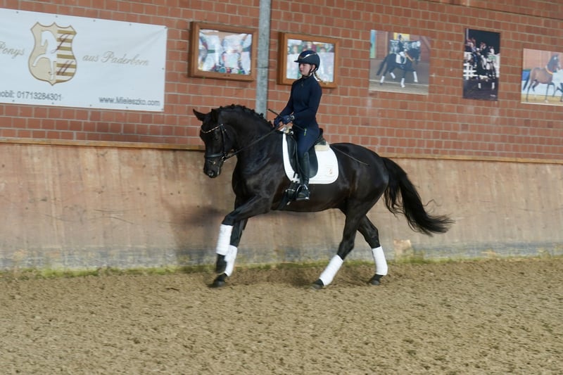 Verkaufe wunderschönen Westfalen-Wallach, geb. 2021, in elegantem Rappen. Mit einem Stockmaß von 169 cm ist er perfekt für den Dressursport geeignet. Der junge Wallach überzeugt durch seine elegante Erscheinung und sein vielversprechendes Talent im Dressurviereck. Er ist gut Angeritten und wartet auf weitere Förderung.Er deutet Potenzial für die Zukunft. Bei Interesse stehe ich gerne für weitere Informationen und eine Besichtigung zur Verfügung.