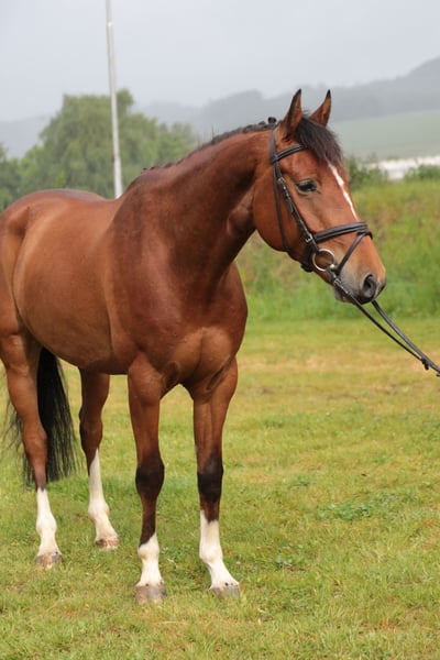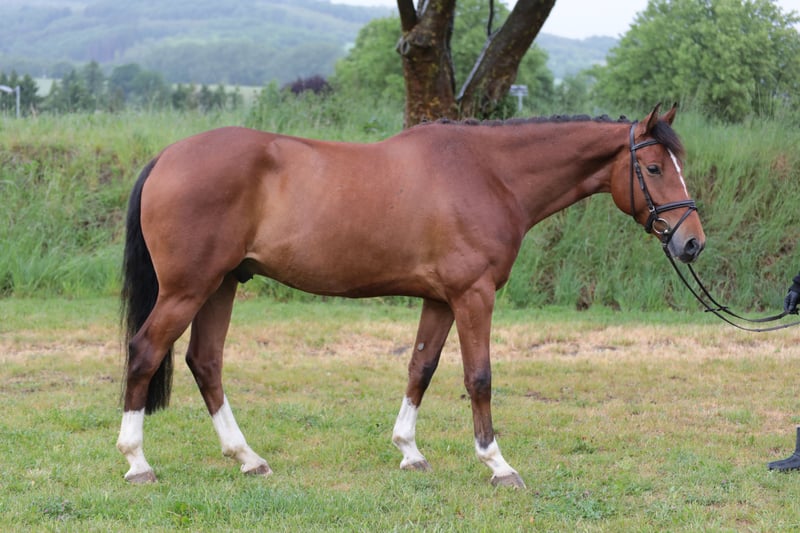 This handsome gelding impresses not only with his elegant appearance but especially with his unique character and high willingness to learn. He is always motivated and brings a lot of joy to daily work. A true gem to handle: Born and raised with us from a young age, he has been uncomplicated and people-oriented from the very beginning. Whether in the stable or during training – he is reliable, friendly, and easy to manage. A horse for the future, who will find his way in sport or leisure with the right partner.