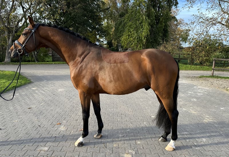 Ce mâle de quatre ans, expressif et plein de caractère, par Vaderland, se distingue par ses excellentes allures de base, son tempérament idéal et son potentiel exceptionnel pour le dressage. Il a déjà obtenu de bonnes places lors de concours de sauts d'obstacles pour jeunes chevaux et est formé jusqu'au niveau Dressage Pony A. Il maîtrise avec assurance le trot en extension, les épaules en dedans, ainsi que les premiers exercices de rassembler. Son galop puissant, monté de façon montante, et ses mouvements fluides, rythmiques et sûrs soulignent sa qualité et sa facilité de conduite. Sur le plan du caractère, il ne laisse rien à désirer. Il se montre exceptionnellement calme, courageux et fiable, aussi bien lors de l'entraînement quotidien que en extérieur, qu'il parcourt sans problème en autonomie. De plus, il est ferré et chargé sans souci, et ne présente aucun comportement indésirable. Un cheval qui convainc par sa combinaison de volonté de performer, de décontraction et de nervosité maîtrisée – idéal pour les cavaliers ambitieux à la recherche d’un jeune cheval fiable et talentueux pour poursuivre sa carrière sportive. 📞 Si vous êtes intéressé, n'hésitez pas à nous contacter. Directement du propriétaire. Les essais en selle sont possibles à tout moment sur rendez-vous.