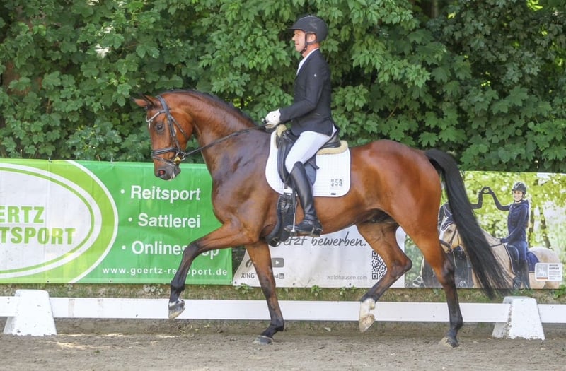 Bom Dia ist ein 5 Jähriger unverbrauchter und gut und gesund aufgewachsener Wallach der direkt vom Züchter verkauft wird. Er 4 jährig angeritten worden, dann aber nochmal auf die Wiese gegangen mit Kumpels und seit Frühjahr dieses Jahres unter dem Sattel. Er hat drei gute GGA wobei der Galopp besonders hervorzuheben ist. Er ist auch auf dem Turnier sehr artig und hat bei seinem zweiten Turnierstart direkt Dressurpferde A gewonnen. Seine Großmutter ist bei uns schon erfolgreich bis zur Klasse S gegangen und seine Mutter besticht durch bergauf und Rittigkeit welche sie ihm deutlich mitgegeben hat. Wir suchen ein tolles und förderndes zuhause für ihn. Er hat auch einen sehr gute Tüv inkl. Hals, Rücken etc