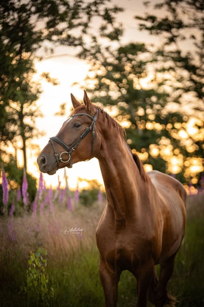For sale is a large-framed, elegant 5-year-old dressage gelding (approximately 1.76 m tall). The gelding comes directly from the breeder and was gently started under saddle at the end of 2023. Sid is clear-minded and people-oriented. He is currently at the A-level in dressage, impressing with three very good basic gaits, excellent rideability, and a remarkable work ethic. In riding horse tests, he has already achieved individual scores of up to 8.0 and has placed. His sire, Selectric (Sezuan x De Kooning), captivates with a modern silhouette, large proportions, and plenty of shoulder freedom. He is currently successful up to St. Georg level under Manuel Springhetti and stands out particularly for his exceptional rideability scores and willingness to collect. His dam, the Verb. Pr. St. Diva (Don Bedo I x Florestan), has produced several successful offspring, including: - Shynedo (by Sir Heinrich) – licensed and successful at S level - Violetta (by Vitalis) – also successful at S level - Zaverio P (by Zoom) – successful in dressage horse tests at M level - St. Pr. St. Stella (by Sir Heinrich) – successful up to L level - Zakerey (by Zoom) – licensed and successful up to L level - as well as other competition-successful offspring up to L level All offspring are characterized by excellent rideability, high willingness to learn, and above-average movement potential. An ideal horse for trainers, ambitious competition riders, or talented amateurs looking for a promising young horse. Viewing and trial rides are possible by appointment – we look forward to serious inquiries! Good X-rays from 2024 are already available.