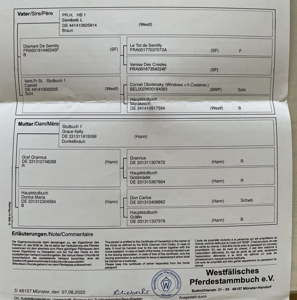 Daemon es un semental de cinco años que se destaca por su gran potencial en el salto. No solo impresiona por su tamaño, sino también por su capacidad en el salto. Está bien entrenado y muestra un rendimiento prometedor en la disciplina de salto. Su linaje de salto habla por sí mismo: Graf Grannus x Dembele‘ / Diamant de Semilly Se distingue por su excepcional y honesto carácter, así como por su facilidad de manejo. Por lo tanto, no hay nada que impida su éxito en la doma. Es adecuado tanto para el jinete ambicioso como para el deportista experimentado que busca un compañero talentoso para competiciones y entrenamiento. Daemon es dócil en el manejo, está bien socializado y tiene un carácter amigable. ¡Se busca un hogar de primera calidad 5***** para él! Venta directamente del criador. Cualquier pregunta, etc., estaré encantado de responder por WhatsApp o al 015204111038.