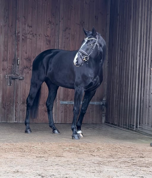 Zum Verkauf steht ein wunderschöner, schwarzbrauner Westfalen Wallach, geboren im Jahr 2020. Mit einem Stockmaß von 168 cm hat er die ideale Größe für ambitionierte Reiterinnen und Reiter, die auf der Suche nach einem zuverlässigen Dressurpferd sind. Der junge Wallach überzeugt durch seine imposanten Erscheinung, seine eleganten GGA und sein angenehmes Wesen. Er zeigt bereits viel Talent und Bereitschaft sich für das große Viereck weiter zu entwickeln. Mit einer Amateurin wurde er 2025 bereits siegreich und mit mehrfachen vorderen Platzierungen im A Bereich vorgestellt. Mittlerweile beherrscht er die Lektionen der Klasse L mit Leichtigkeit. Die fliegenden Wechsel wurden spielerisch hinzu genommen. Er wurde selbstverständlich regelmäßig geimpft, entwurmt und die Zähne wurden ebenfalls regelmäßig gemacht. Im Januar werden aktuelle Röntgenbilder gemacht. Er eignet sich sowohl für den ambitionierten Freizeitreiter als auch für den Turnierreiter, der einen zuverlässigen Partner sucht. Bei Interesse oder für weitere Informationen stehe ich Ihnen telefonisch unter der Nummer 0176/64615504 gerne zur Verfügung. E-Mails können nicht berücksichtigt werden!