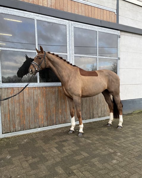 2020 geboren Wallach. Fuchs, ca. 1.70m La Vie x Vitalis Westfalen. Pferd mit 3 sehr gga. Sehr brav, im Umgang und unter Sattel. Der ist spat angeritten um ihm die Zeit zu geben zum reifen. Deswege noch nicht so weit ausgebildet für ein 6 jr, also sicher ein Pferd das es lohnt aus zu bilden. Der ist jetzt so auf Dressurpferde A niveau. Immer arbeits bereit und nicht guckig. Der hat kein unarten im Stall. Hat ein sehr gute aktuelle tüv incl Rücken. Preisvorstellung € 22.000 + mwst ( 21%) Pferd steht in Kinrooi ( B). Tel: 0031683948093