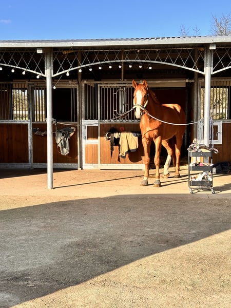 Je vends ici mon hongre de grande taille et très remarquable, âgé de 5 ans, Bonheur du Coeur, surnommé Baby. Il est issu de Bon Courage et se distingue par sa taille, sa facilité de monte, mais surtout par son caractère exceptionnellement doux et uncomplicated. J’ai moi-même acheté Baby à l’âge de 3,5 ans et il a été monté en douceur. Son dressage a été adapté à son âge, sans pression. Actuellement, il se trouve à un niveau solide en dressage, équivalent à la catégorie A, et il se montre toujours motivé, volontaire à apprendre et obéissant. Il connaît le travail aux barres et aux cavalettis, ainsi que les sorties en extérieur, qu’il effectue aussi bien seul qu’en groupe, de manière fiable. Son tempérament calme et équilibré est particulièrement remarquable : deux enfants ont déjà fait du voltige dessus au pas, en effectuant divers exercices – Baby est resté calme, serein et fiable à chaque fois. Au quotidien, il est très gentil, câlin et totalement facile à vivre. Il est ferré et chargé en remorque, actuellement sans fer (il a été ferré à l’avant cet été) et il est régulièrement monté par ma partenaire d’équitation. Selon moi, il possède un excellent potentiel pour évoluer dans des classes supérieures. C’est un cheval avec lequel on peut continuer à progresser tranquillement cet hiver pour repartir en compétition l’année prochaine. Un hongre de jeune élevage, honnête, avec de la taille, de la qualité et beaucoup de cœur. Les photos datent des dernières années, et les vidéos le montrent à 4 ans pour la première fois sur la carrière. ⸻ Visite et essais en selle : 🐎 Essai en selle : 30 € par cheval (max. 2 cavaliers) 🎉 Jours fériés : 50 € ❗ Annulations au moins 24 heures à l’avance, sinon la séance sera facturée. 🎬 Présentation par nos entraîneurs (sans essai en selle ou travail au sol) : 25 € par cheval 📩 Pour confirmer le rendez-vous, merci d’envoyer votre nom complet et votre adresse. Les examens vétérinaires de toute nature peuvent être réalisés par votre vétérinaire ou le nôtre. Je suis également très volontiers à disposition pour aider lors du transport vers sa nouvelle maison. 📞 Contact uniquement par téléphone : 0341 / 98995223 🕘 Du lundi au dimanche, 09h00 – 18h00 D’autres chevaux à vendre sont disponibles sur : 🌐 www.deutsche-pferde-boerse.de Les mesures de taille sont approximatives et ne constituent pas des garanties.