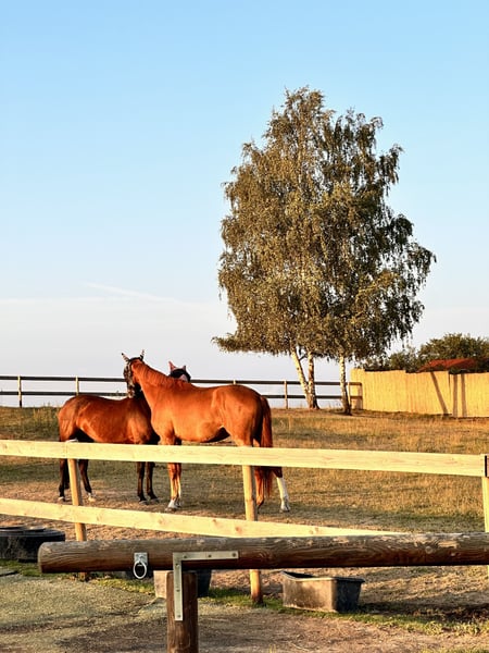 Sprzedaję tutaj mojego dużego, wyróżniającego się 5-letniego wałacha Bonheur du Coeur, zwanego Baby. Pochodzi od Bon Courage i wyróżnia się swoim wzrostem, ujezdnością oraz przede wszystkim niezwykle przyjaznym i spokojnym charakterem. Sam zakupiłem Baby w wieku 3,5 lat i delikatnie rozpocząłem jego szkolenie. Jego wykształcenie przebiegało zgodnie z wiekiem i bez presji. Obecnie znajduje się na bardzo solidnym poziomie klasy A w ujeżdżeniu i zawsze wykazuje motywację, chęć nauki oraz jest spokojny. Zna pracę na przeszkodach i cavaletti, a także wyjazdy terenowe, które wykonuje zarówno sam, jak i w grupie, zawsze niezawodnie. Szczególnie warto podkreślić jego spokojną, zrównoważoną osobowość: dwójka dzieci już na nim ćwiczyła w stępie, wykonując różne ćwiczenia – Baby zawsze pozostawał spokojny, opanowany i niezawodny. W codziennym kontakcie jest bardzo miły, przytula się i jest absolutnie bezproblemowy. Jest wolny od problemów z podkuwaniem i załadunkiem, obecnie jest kłusakiem (latem był podkuwany z przodu) i regularnie jeździ z moim jeźdźcem na treningach. Z mojej oceny ma bardzo dobre perspektywy na wyższe klasy. To koń, z którym można spokojnie spędzić zimę, budując relację, a w przyszłym roku rozpocząć sportową karierę. Uczciwy młody wałach o dużym wzroście, wysokiej jakości i pełen serca. Zdjęcia pochodzą z ostatnich lat, a filmy pokazują go, gdy miał 4 lata, pierwszy raz na placu treningowym. ⸻ Oględziny i jazda próbna: 🐎 Jazda próbna: 30 € za konia (maksymalnie 2 jeźdźców) 🎉 Święta: 50 € ❗ Odwołania prosimy zgłaszać co najmniej 24 godziny wcześniej, w przeciwnym razie termin zostanie obciążony kosztami. 🎬 Prezentacja przez naszych jeźdźców (bez jazdy próbnej i pracy na ziemi): 25 € za konia 📩 Aby potwierdzić termin, prosimy o podanie pełnego imienia i nazwiska oraz adresu. Badania weterynaryjne różnego rodzaju mogą zostać przeprowadzone przez Państwa lub naszego weterynarza. Chętnie pomogę również przy transporcie do nowego domu. 📞 Prosimy o kontakt wyłącznie telefoniczny: 0341 / 98995223 🕘 Pon – Nie 09:00 – 18:00 Więcej koni na sprzedaż znajdą Państwo pod adresem: 🌐 www.deutsche-pferde-boerse.de Podane wymiary są szacunkowe i nie stanowią gwarantowanej cechy.